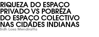 O século XXI alvoreceu com uma forte sensação de progresso e esperança para a Índia e para a sua classe média urbana. Apesar de continuarem a ser locais confusos e dramaticamente problemáticos, as metrópoles já não crescem ao ritmo assustador ou ao sabor caótico da há vinte anos. Várias instituições ocidentais – como os centros comerciais ou os cafés – estão em franco desenvolvimento e são rapidamente apropriados por todas as camadas da população. Começa-se a debater conceitos como a rua pedonal ou o melhoramento da paisagem urbana, dentro de estratégias de sustentabilidade. E, à medida que os todos os cidadãos começam novamente a fruir amenamente dos espaços públicos e semi-públicos das cidades – tomando como exemplo a omnipresença do cricket que, por si só, é responsável pelo aproveitamento e relativa dignidade de uma miríade de pequenos terreiros dentro das cidades –, a dicotomia entre espaço privado e espaço público vai-se esvanecendo. Os indianos estão a querer fazer as pazes com as suas cidades.|